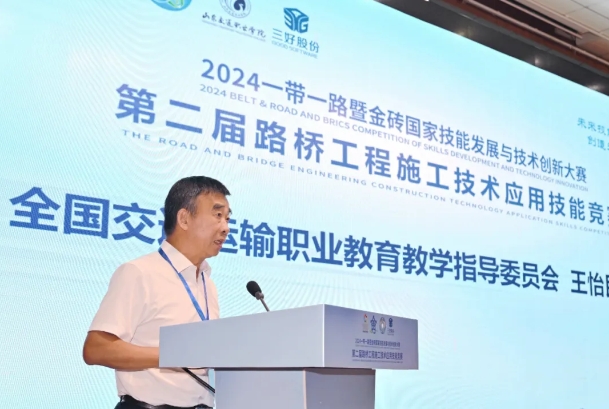 全国交通运输职业教育教学指导委员会副主任委员 王怡民发表了致辞。他表示,本届路桥赛项契合国家职业教育改革和交通运输事业发展需求,聚焦交通土建施工技术应用能力,通过先进的数字化竞赛平台与低碳建造等先进技术理念,模拟真实岗位能力要求进行竞赛,充分体现行业发展及企业用人需求,是培养未来交通运输行业国际化、高技术技能水平人才的一次有益实践。