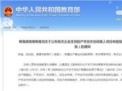 近日,教育部高等教育司公布了《教育部高等教育司关于公布有关企业支持的2019年第一批产学合作协同育人项目立项名单的函》,公布了2019年第一批产学...