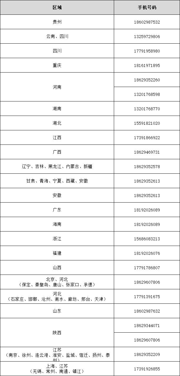 西安三好软件技术股份有限公司各区域经理联系方式