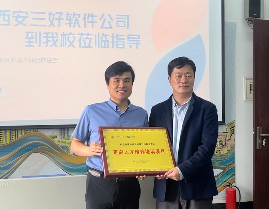 会上,西安三好软件技术股份有限公司向校方与会人员详细汇报了其发展历程和所获荣誉,随后校企双方进行“校企共建教育部供需对接就业育人就业实习基地项目”授牌,并相互颁发校企合作互聘证书,校企共建,资源共享,为后续合作打下坚实基础。