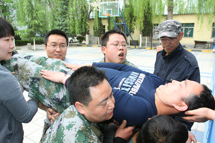 第一天的训练项目难度相对较低,但需要极高的团队协作力。第一个项目就是拓展训练中的经典——信任背摔。队员都将自己的双手捆绑,从近2米高的台子上后倾跌落,而身后用坚实的臂膀为他筑起安全保障的,就是这群朝夕相处的好同事,好朋友。