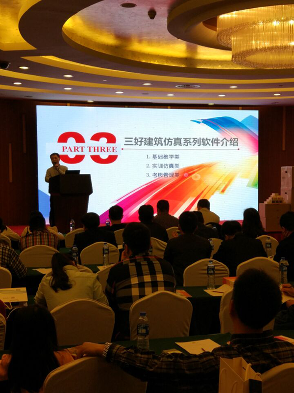 本次交流会旨在为与各校专家分享当下建筑教育信息化的教学热点,探讨校内教学实训建设思路,共同推动建设类高校教学改革;同时进一步深入了解第二届大赛赛制流程、比赛规则、软件操作做好准备!西安三好软件技术股份有限公司作为第二届大赛的技术支持单位,承担了包括参赛软件、赛制制定在内的工作。西安三好软件技术股份有限公司一直致力于将虚拟仿真技术和“互联网+”思维结合教学实训的一体化理念,并将十余年的丰富一线施工经验运用于不同的校企合作共建项目中。此次交流会不仅详细解读了第二届大赛的赛制流程规则,且现场为大家展示了《虚拟仿真技术在建设类院校的整体解决方案》的实训教育思路,包括目前虚拟仿真技术的运用、三好建筑仿真系列产品以及如何进行“虚实结合一体化”的整体方案。满满干货赢得现场人员的赞许!