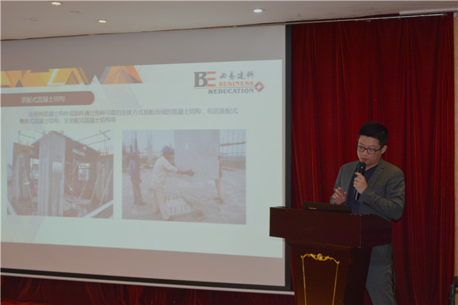 随后,必易建科科技有限公司董事长王鹏为参会老师带来“装配式混凝土建筑设计”的专题报告。王总从建筑设计的专业角度,介绍了装配式建筑设计现有体系规范、规程及图集、建筑设计要点、结构设计要点及BIM软件应用等内容。