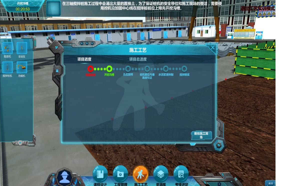 三好城市轨道工程仿真综合实训系统涵盖盾构场地建设,盾构始发井施工,盾构管片施工,地跌盾构隧道施工,地铁联络通道施工,地铁车站基坑围护、支撑施工五大模块,盾构施工场地建设、地铁盾构始发洞口密封施工等22个施工节点。