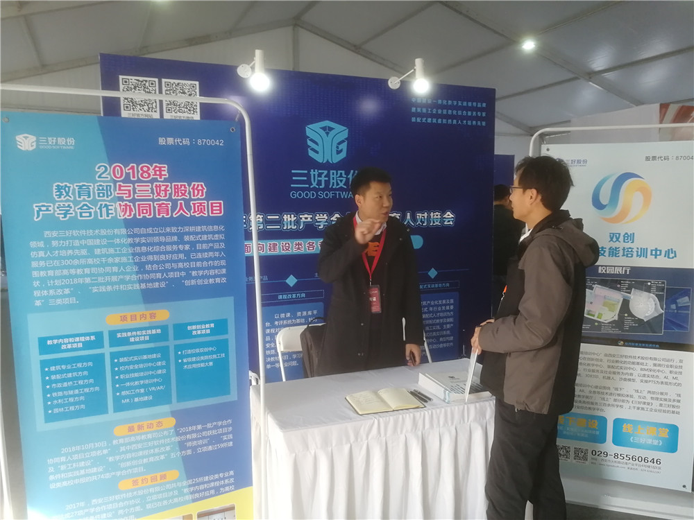 展会上,前来参会的多名建设类院校学科带头人及骨干教师就《三好股份2018年第二批产学学合作协同育人申报指南》进行详细咨询,并对校企合作进行深入交流和热烈探讨。