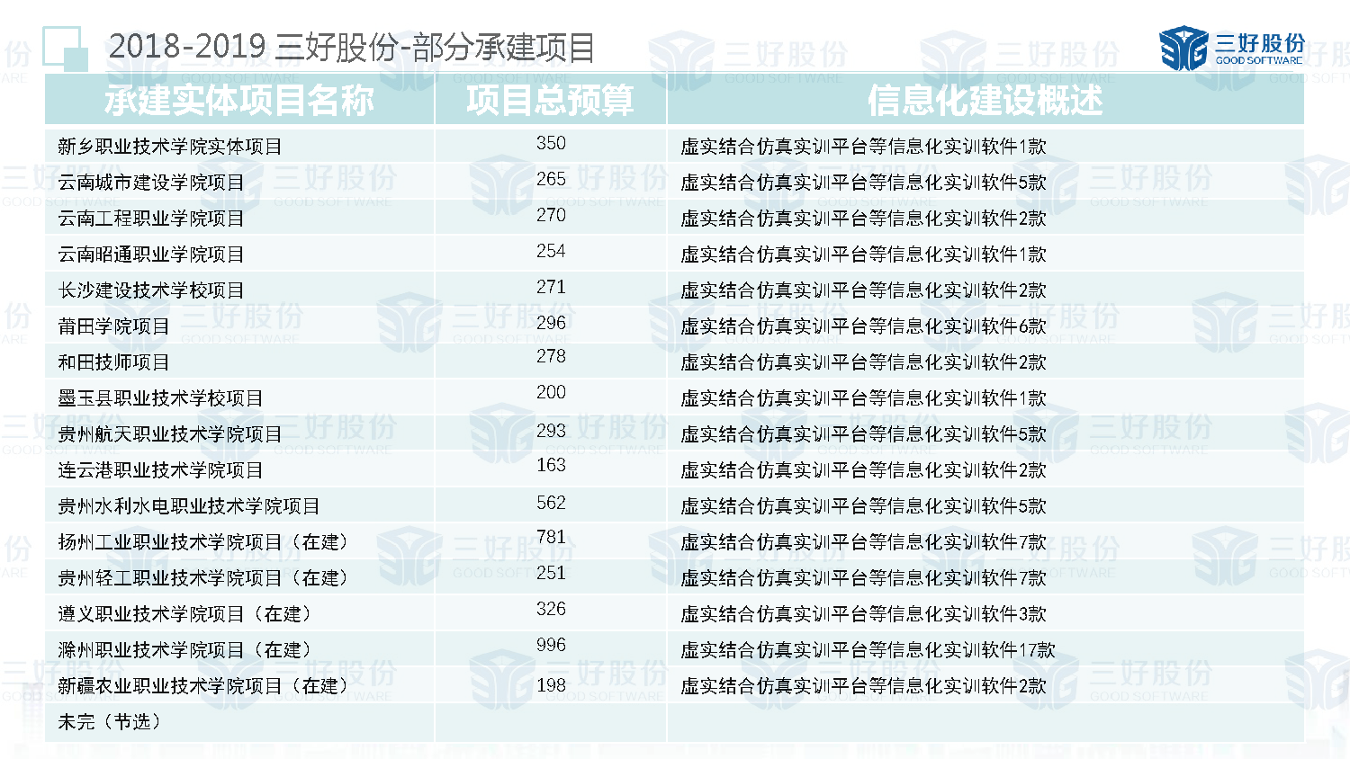 “产学合作,协同育人”是新时期国家教育改革产教融合发展的重大举措,三好股份研发中心产品部经理张丹介绍到,教育部产学合作协同育人项目实施以来,三好股份依靠自身行业内先进的产品、技术和研发体系,积极投身于高校产学合作协同育人项目合作,2017、2018年两年累计立项157项。目前,2019年第一批产学合作协同育人项目申报指南已经发布,三好股份获批项目涉及“教学内容和课程体系改革”、“实践条件和实践基地建设”两个方面,其中教学内容和课程体系改革项目围绕装饰与装修工程、三维可视化施工安全标化管理、PTS建筑实践工作平台虚实结合实训、建筑钢结构工程、交通工程、土木大类资源库建设六个方向,实践条件和实践基地建设项目面向职业技能培训中心基地建设、校内一体化实训基地建设、装配式一体化实训基地建设三个方向开展项目合作。