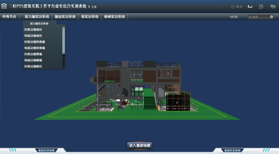以虚拟仿真实训软件结合建筑实体教学模型,一站式解决建筑类学生实习、实训、教学使用的综合教学平台,采用项目教学法,精选了一个典型工程作为实训的载体,以3D技术为依托,综合行业规范、贯穿教学重难点、实现真实施工场景仿真模拟及流程动态演示、人机交互式操作。是理论教学、网络技术、教育信息化的多方融合,在设计理念、展现形式、应用环境方面具有明显的特色和创新。