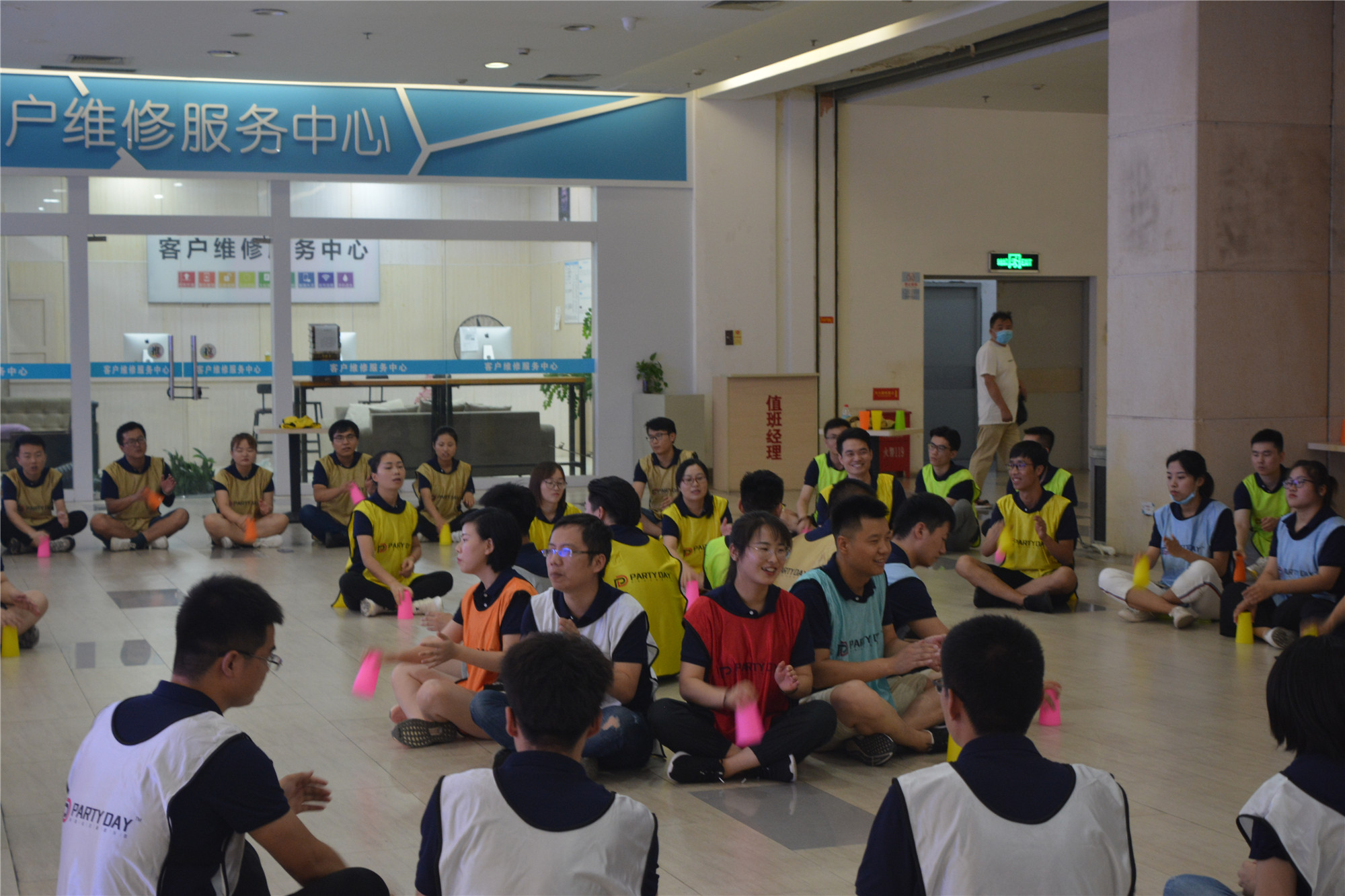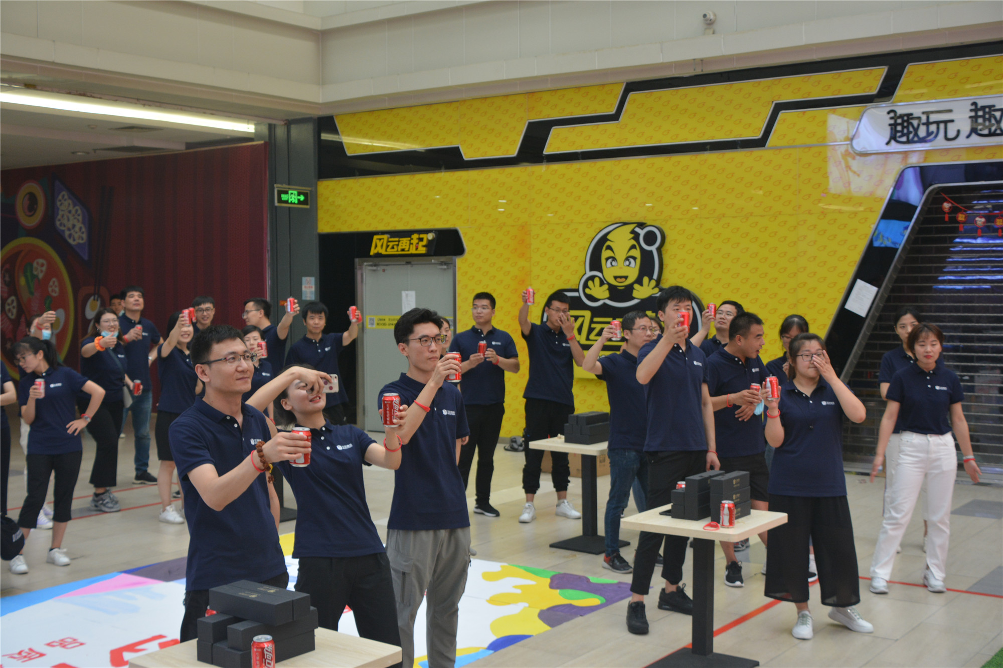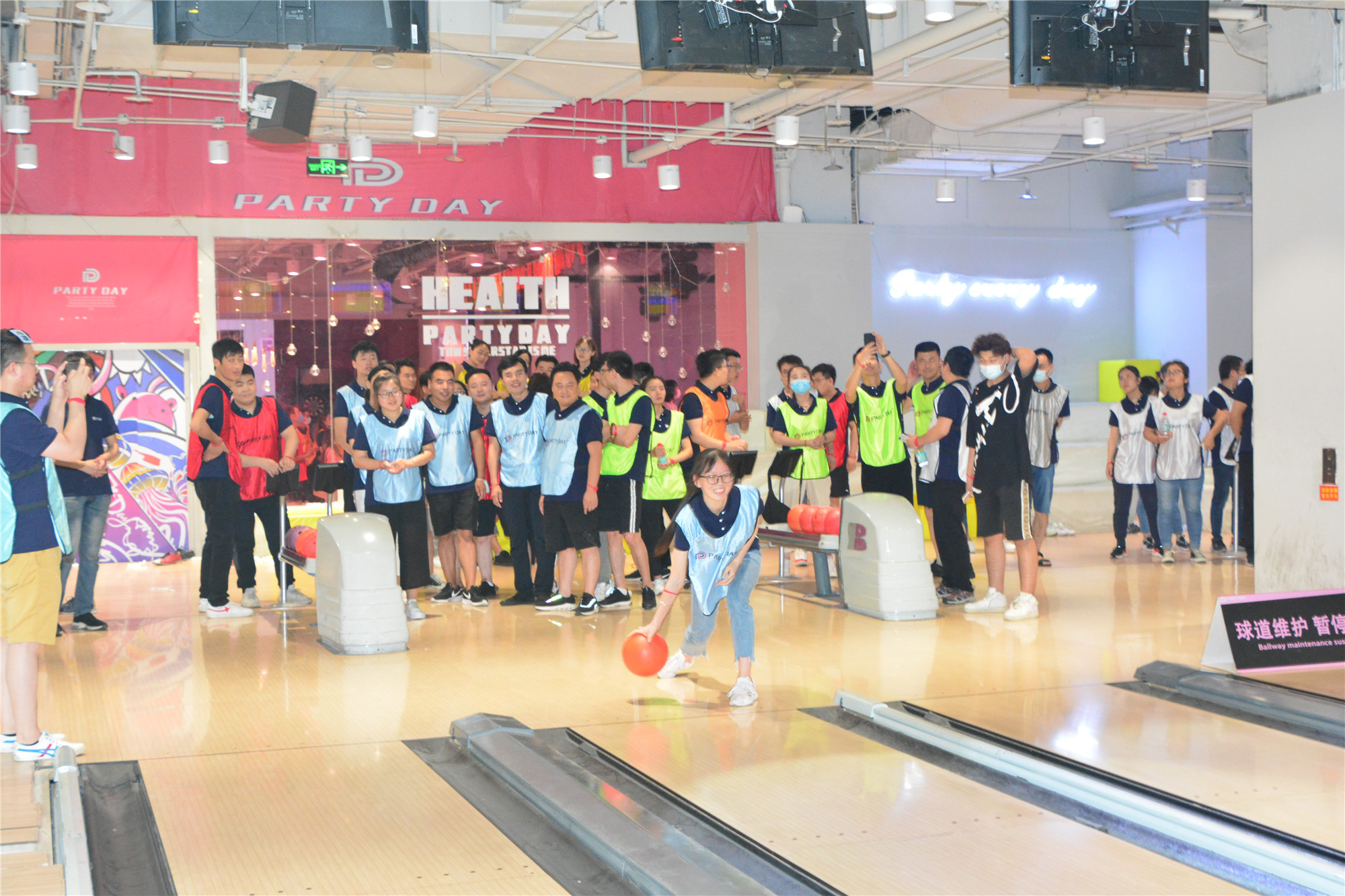 一番热身结束后,庆典的“重头戏”——团建环节正式开始,三好员工们分成9队,穿上各自队服开启了丰富精彩的团建活动。在专业教练的带领下,共进行了杯子舞、飞镖机比赛、保龄球比赛等活动,团建过程中,每个员工都热情满满,激动之情溢于言表。