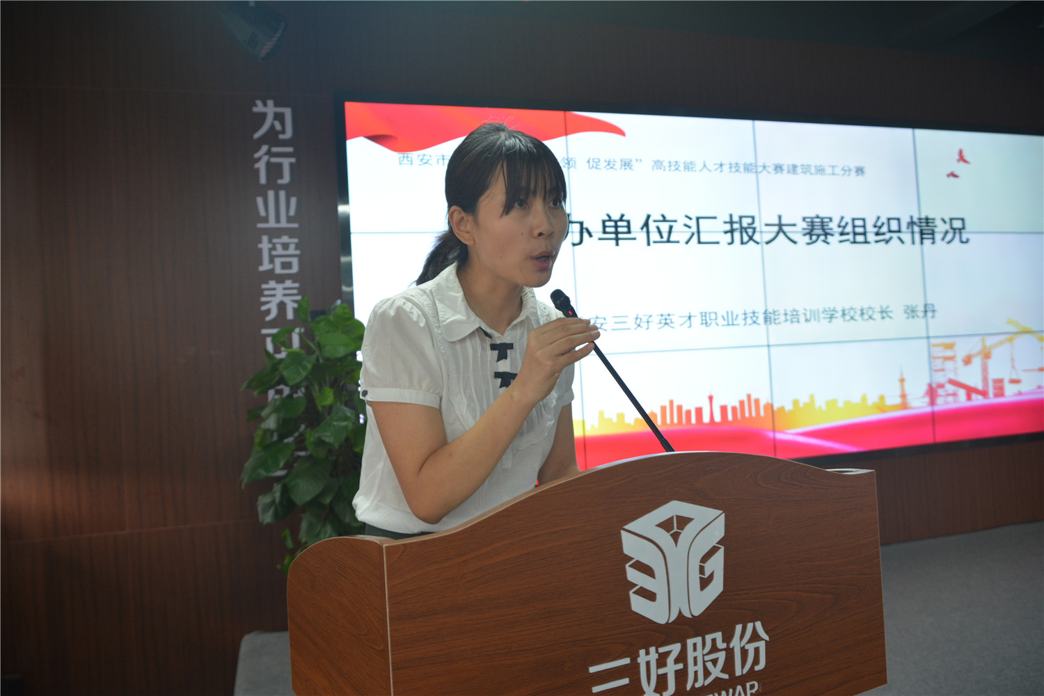 承办单位西安三好英才职业技能培训学校校长张丹致欢迎词并做大赛组织情况汇报