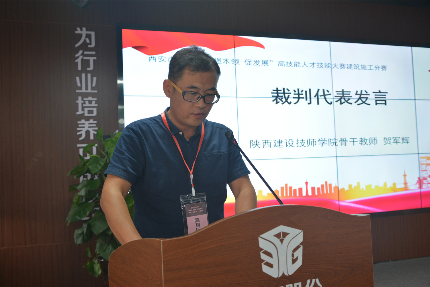 裁判代表陕西建设技师学院骨干教师贺军辉发言