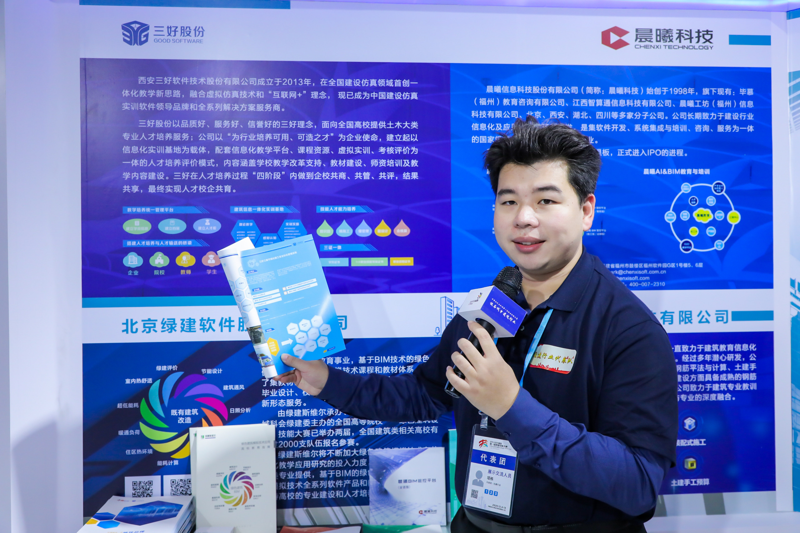 西安三好软件技术股份有限公司研发中心教学经理项栋,在展区现场接受采访,向大家展示了三好股份建筑工程数字化,引起业内各方的广泛关注。