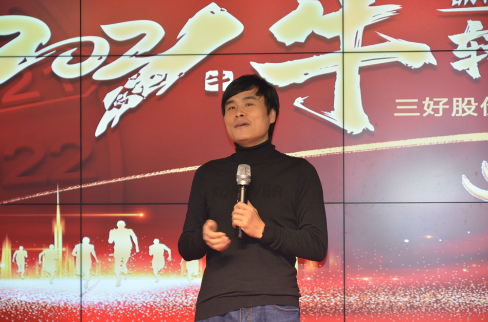 张总现场引用了施耐庵在《水浒传》中的一句诗:“谁无暴风劲雨时,守得云开见月明。”他希望三好人都能够成为无畏困苦的巅峰人,在新的一年整装出发,继续努力,三好股份的业绩长虹,大家一起圆梦。