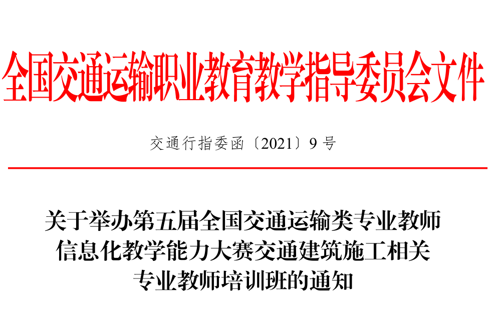 关于举办第五届全国交通运输类专业教师信息化教学能力大赛交通建筑施工相关专业教师培训班的通知