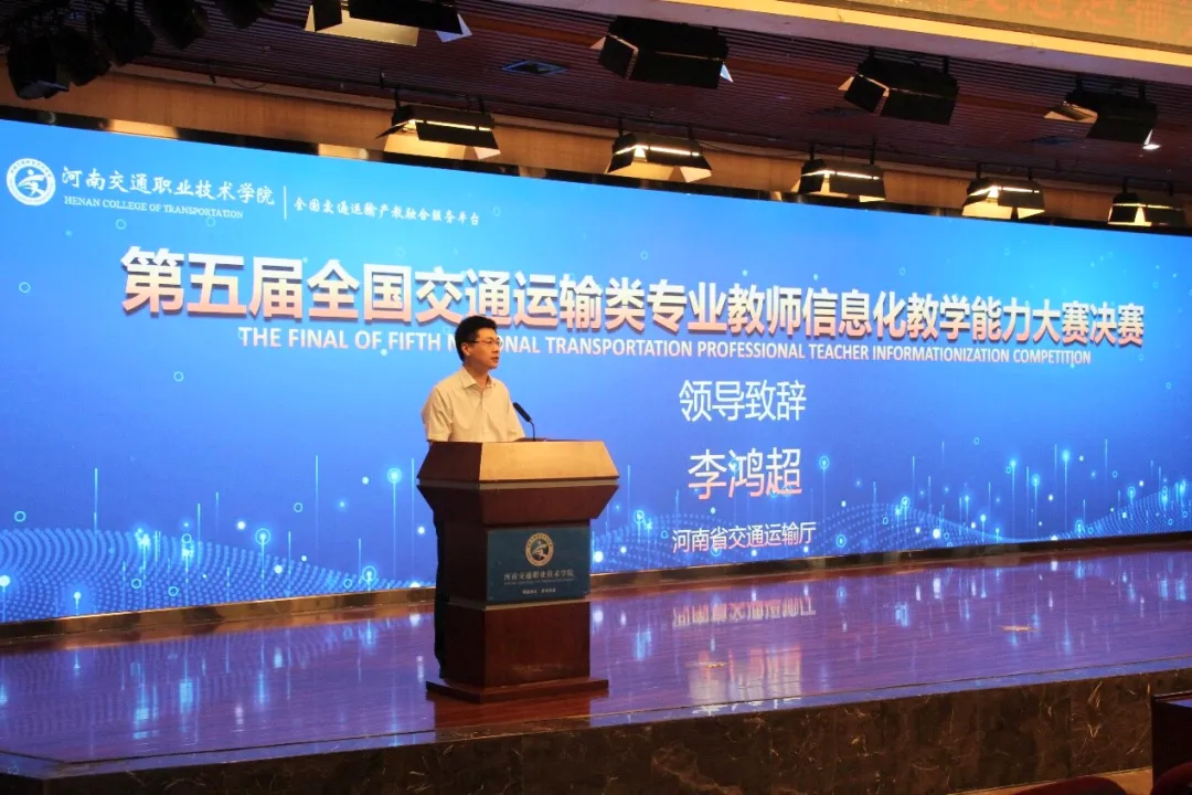 河南省交通运输厅李鸿超先生为开幕式致辞,河南地处中原,承东启西,连南贯北,是内陆交通大省,交通运输历来是河南省发展最重要的竞争力之一。交通运输职业教育承担着培养高素质技术技能人才的重要任务,是推动交通运输行业高质量发展的支撑和重要保障。本次大赛是交通运输系统的老师们切磋交流、提升能力的宝贵舞台,并预祝“第五届全国交通运输类专业教师信息化教学能力大赛”决赛取得圆满成功!祝各位参赛选手各展风采、勇创佳绩!