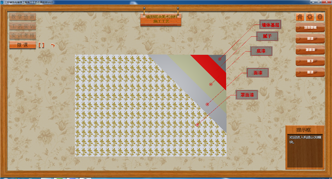 三好装饰与装修工程施工工艺仿真软件包含了主体完成后的精装修施工工艺,全方位地展示了装饰与装修过程中的所有细节,提供新型、高效、立体、全面的展示效果,让学生直观感受多种工艺综合应用呈现的整体画面,切实解决装饰装修专业学习和实训的难题。